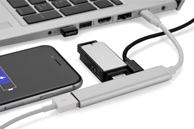 The USB Hub with Type C Cable - ROSKO is a device that allows you to expand the number of available USB ports on your computer. It is compatible with both Mac OS and Windows systems and does not require installation of drivers. Simply connect the HUB to your computer using the Type C cable, and you can then use the additional USB ports provided by this device.Technical specifications: USB 3.0 output, USB 2.0 output, Type C 2.0 output, Type C input. The transfer speed may slightly decrease when devices are connected to all outputs.