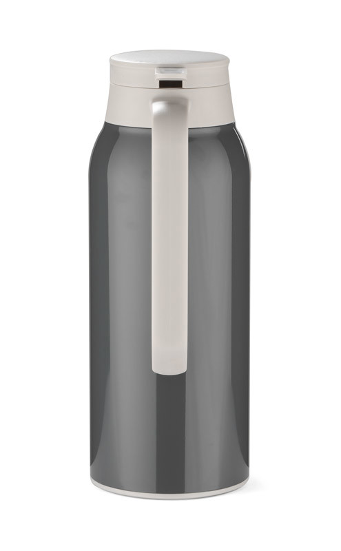 The POTI 1300 ml insulated jug is a practical gift in fashionable grey hues. It is made of steel. The jug interior is made of high-quality stainless steel. It has a comfortable holder and a button for pouring drinks. It maintains temperature for up to 13 hours.