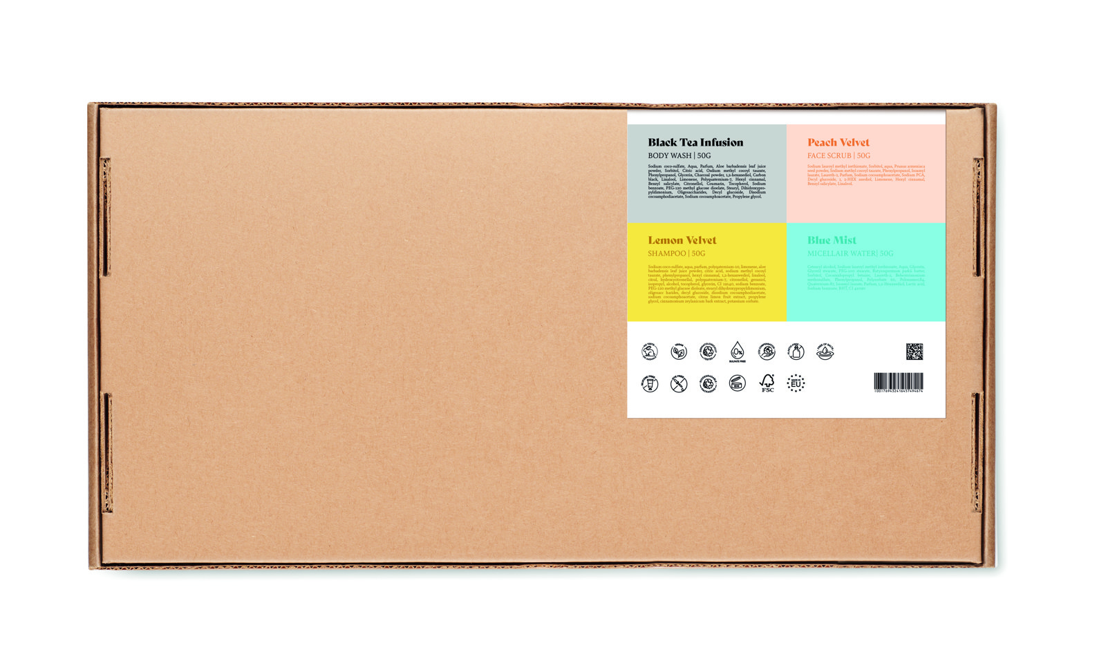 Ta darilni set, izdelan v EU (Španija), ponazarja naravna nega in etične odločitve, izdelane z uporabo veganskih, ponovno uporabnih in recikliranih materialov. Zaradi kompaktnih mer (380 mm x 195 mm x 30 mm) in lahke zasnove (302 g neto teže) je popoln za potovanja. Ne glede na to, ali potrebujete prefinjeno darilo dobrodošlice, vodstveno darilo ali orodje za promocijo trajnostne blagovne znamke, ta potovalni komplet prinaša sporočilo in funkcijo.