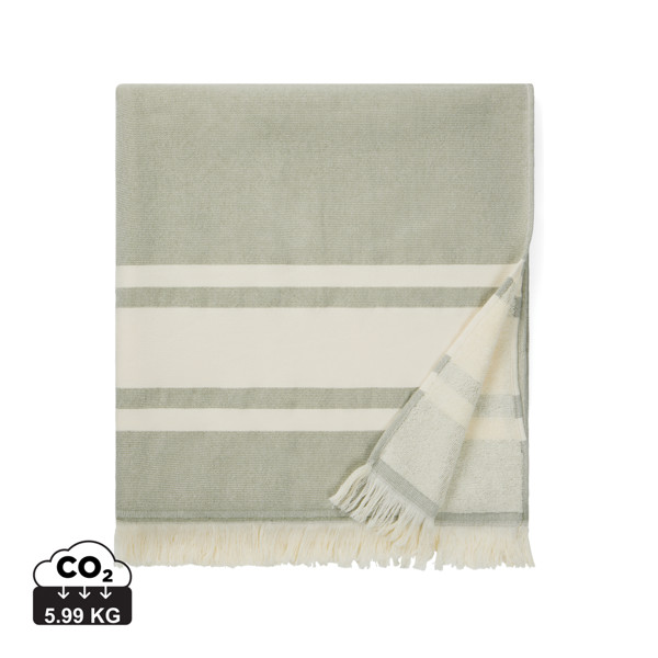 Popolna za dogodke na prostem, pohodništvo ali športne dneve, ta brisača blokira do 98 % sončne svetlobe in ponuja UV50+ zaščita, zaradi česar je premišljeno in funkcionalno poslovno darilo. Vzdržljiva steklenička, izdelana iz polipropilena in ABS, ima priročno sponko s karabinom za enostavno prenašanje. Z merami 77 x 30 cm zagotavlja popolno funkcionalnost v kompaktnem formatu.