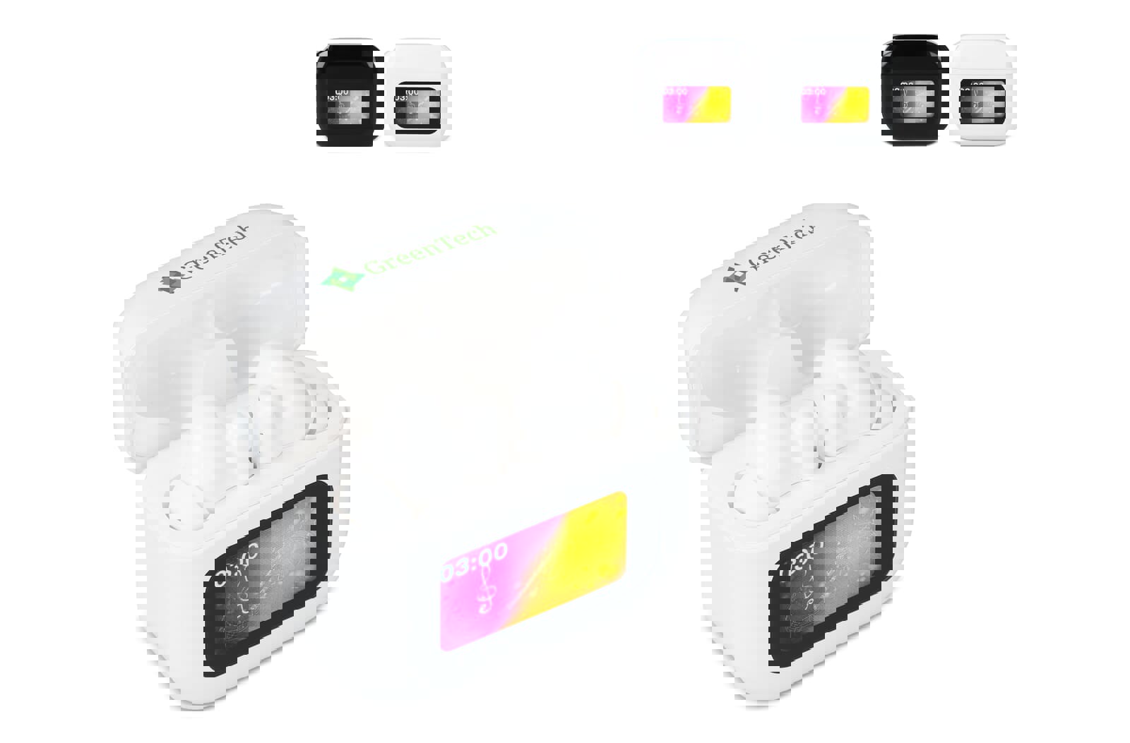 Wireless ANC Earbuds with LCD Touchscreen Control - White