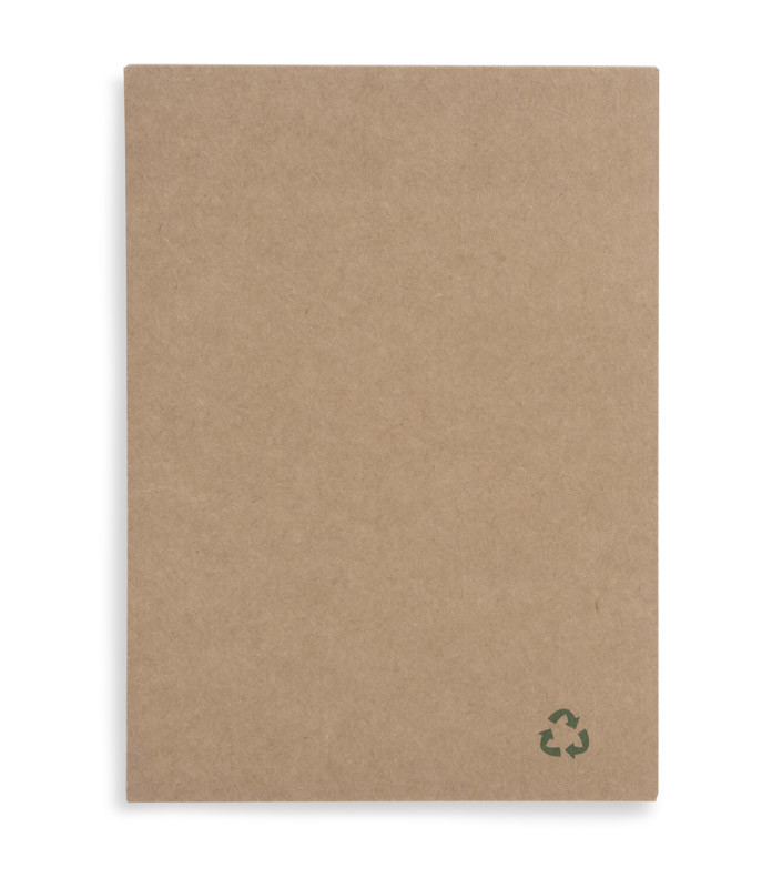Njegova mehka papirnata platnica zagotavlja profesionalen videz in je opremljena z namenskim držalom za pisalo, ki varno pritrdi ustrezni kemični svinčnik, ki je izdelan iz recikliranega kartona in biorazgradljiva plastika. Pero je opremljeno z mehanizmom na gumb za gladko pisanje z modrim črnilom, zaradi česar je eleganten in odgovoren.