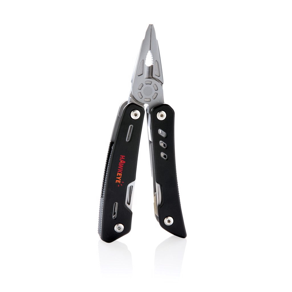 Izdelano iz trpežnega nerjavečega jekla in aluminija uravnoteži moč z elegantno in lahko obliko. Ker meri 100 mm v dolžino in tehta samo 238,8 g, je dovolj kompakten za udobno prenašanje, a dovolj robusten za opravljanje zahtevnih nalog. Večnamensko orodje je elegantno zapakirano v torbici 600D in je na voljo v navadni posamezni škatli – pripravljeno, da naredi vtis na stranke, partnerje ali zaposlene.