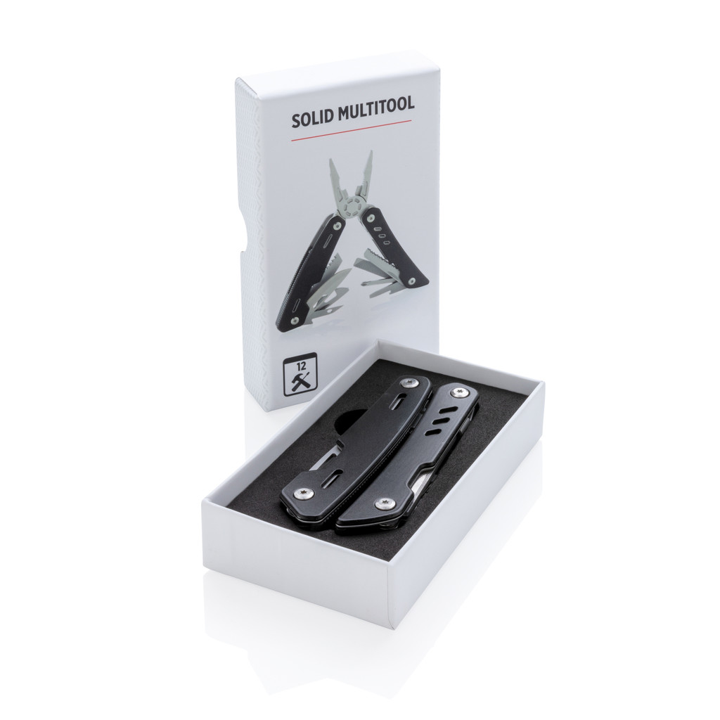 Okrepite svojo blagovno znamko z darilom, ki govori o uporabnosti in vzdržljivosti – večnamenskim orodjem Solid iz zbirke XD. To visoko zmogljivo večnamensko orodje, zasnovano za profesionalce, navdušence na prostem in vsakodnevne reševalce težav, ponuja impresivno paleto 12 integriranih funkcij, vključno z igelnimi kleščami, rezalnikom žice, nožem, izvijači (križni in ploščati), žago, pilo, odpiračem za pločevinke in steklenice, nazobčanim nožem in povrtalom/luknjačem.