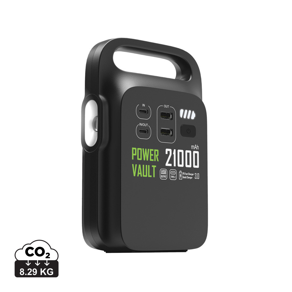 Napajajte kadarkoli in kjer koli s prenosno elektrarno Power Vault RCS – vrhunsko, ekološko osveščeno tehnologijo, ki je popolna za korporativna darila. Z impresivno litij-polimerno baterijo 21.000 mAh ta zmogljiva naprava zagotavlja, da lahko polnite več naprav hkrati prek dvojnih USB-A in Type-C izhodnih vrat.