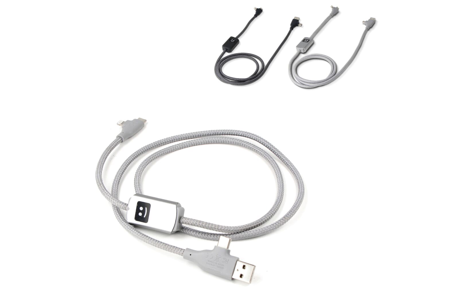 Izboljšajte svoje poslovno darilo z vsestranskim in elegantnim pletenim kablom 3-v-1 iz priznane Zbirke XD — popolna mešanica sloga, funkcionalnosti in vzdržljivosti. Ta vrhunski kabel, zasnovan za polnjenje različnih naprav, ima sistem trojnih priključkov, vključno z vtičem Type-C in dvostranskim priključkom za naprave Android, združljive z iOS in mikro USB.