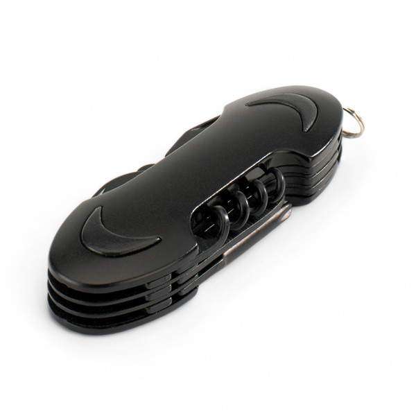 Izdelano iz aluminijastega ohišja in orodij iz nerjavečega jekla ponuja dolgotrajno vzdržljivost in prefinjen zaključek. Z dolžino 105 mm in težo 225 g je večnamensko orodje kompaktno, a trdno, izboljšano z vgrajenim karabinom za hitro pritrditev na pasove ali nahrbtnike – idealno za uporabnike na poti.