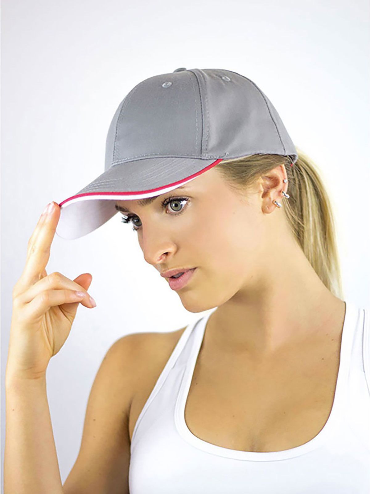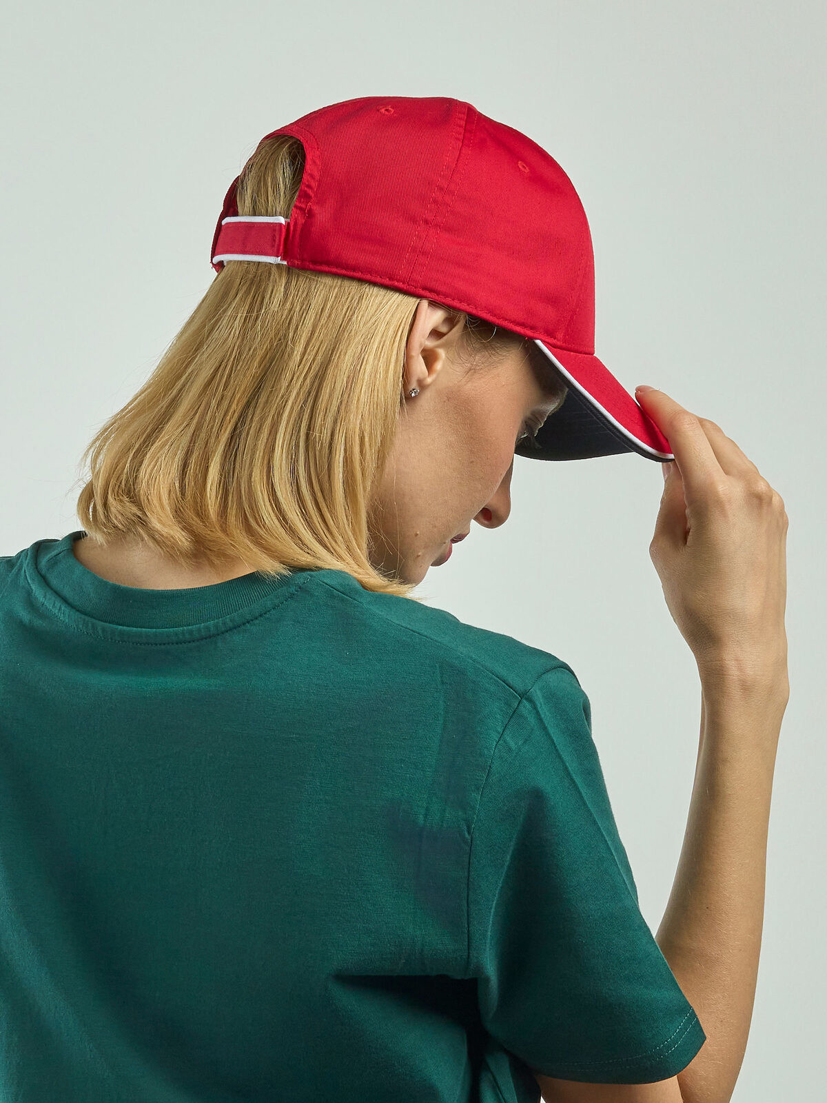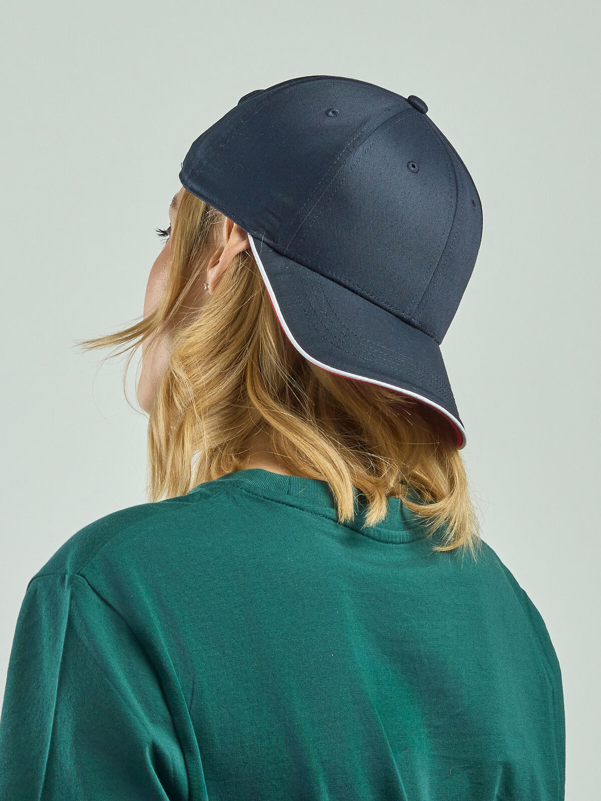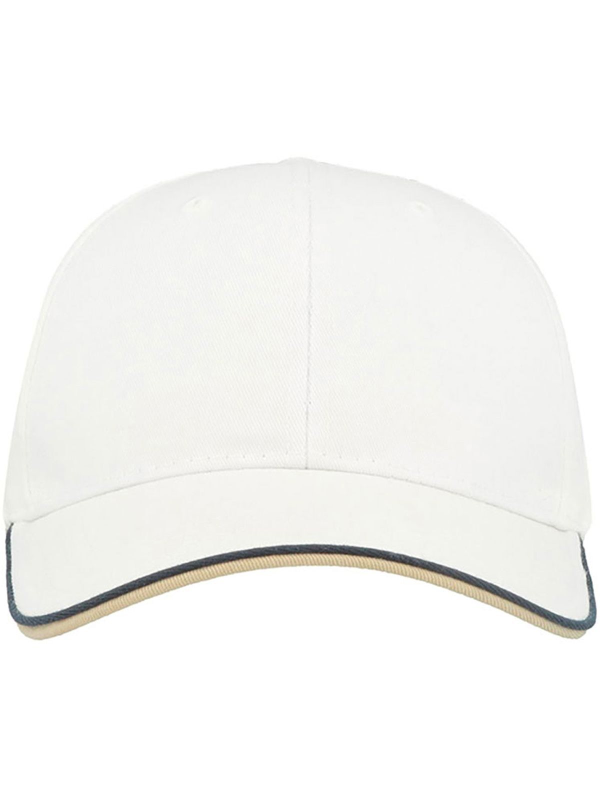 35% cotton 65% polyester. 6 panels cap, velcro closure, sweatband, piping on closure, contrasting visor, stitched eyelets, structured front panel, precurved visor, 4 stitchings on visor, one size fits all. Removable label.