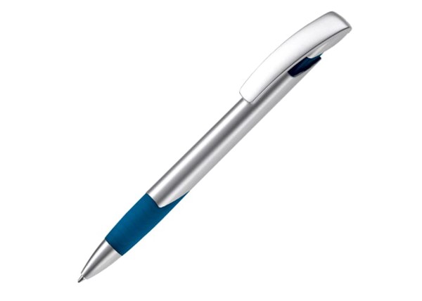 A Toppoint design modern ball pen. Unique design with silver parts and matt, metal tip. Coloured grip and spacer.