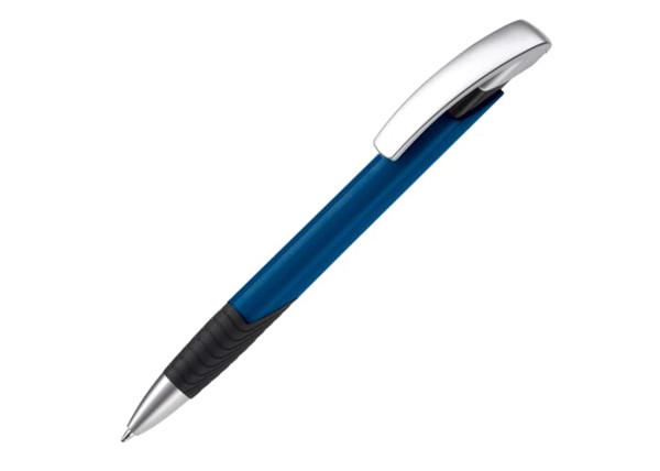A Toppoint design modern ball pen. Unique design with hardcolour shaft and black grip. With a matt, metal tip and a silver clip.