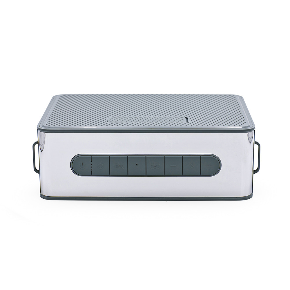 Opremljen z zmogljivim 6 W Bluetooth zvočnikom (BT 3.0) in brezžično polnilno ploščo, ta pripomoček zagotavlja bogat zvok in brezhibno polnjenje brez navlake kablov. Njegova litij-ionska baterija s 4000 mAh podpira do 10 ur predvajanja glasbe in lahko dvakrat brezžično napolni pametni telefon (odvisno od modela). Za dodatno prilagodljivost vključuje tudi vrata USB za uporabo s tradicionalnim polnilnim kablom.