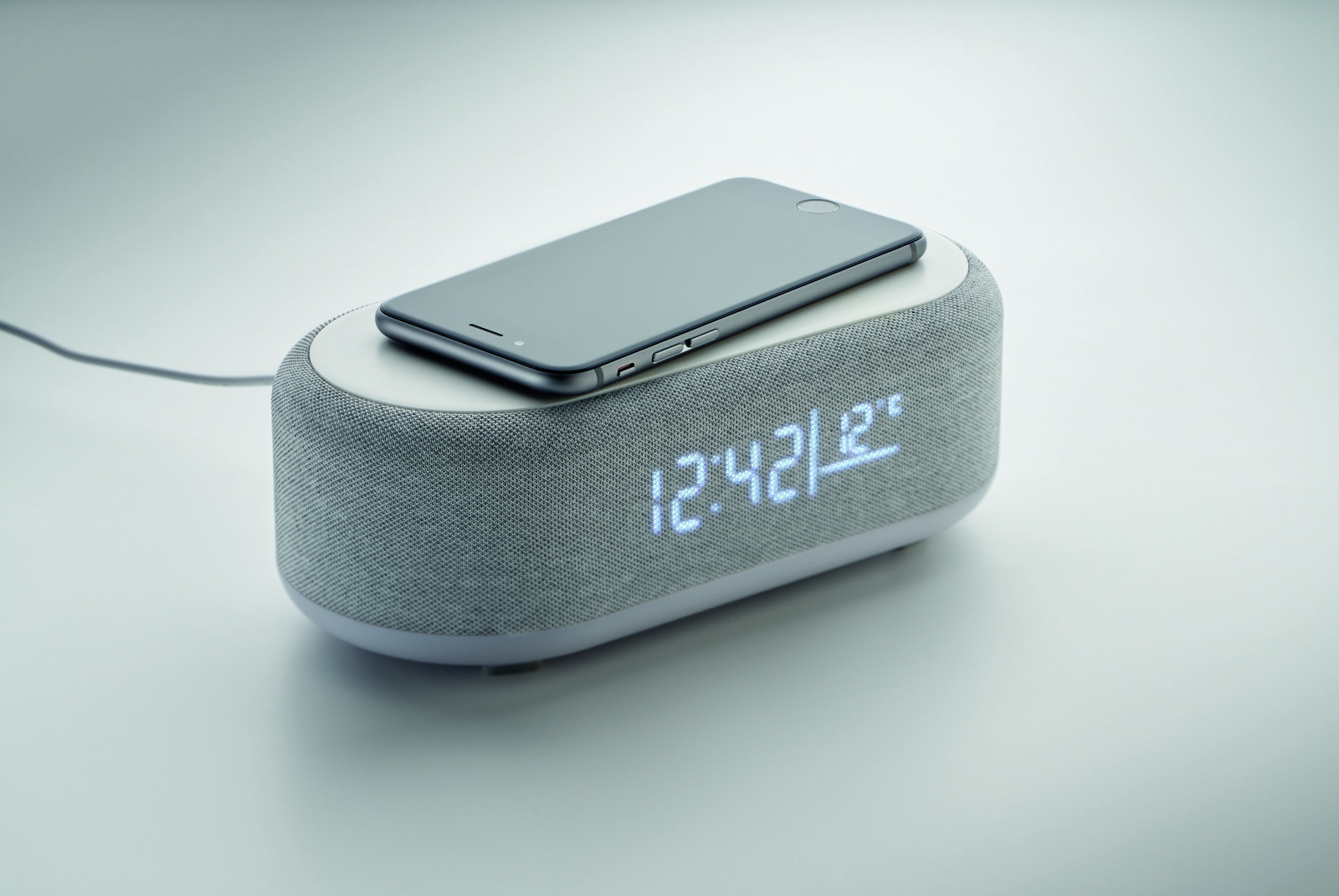 Povišajte svojo blagovno znamko z elegantnim in večnamenskim zvočnikom za brezžično polnjenje Vogue proizvajalca XD Xclusive. Ta elegantno oblikovana naprava 2-v-1 je popolna mešanica visokokakovostnega zvoka in udobja brezžičnega polnjenja, zaradi česar je idealno poslovno ali promocijsko darilo.